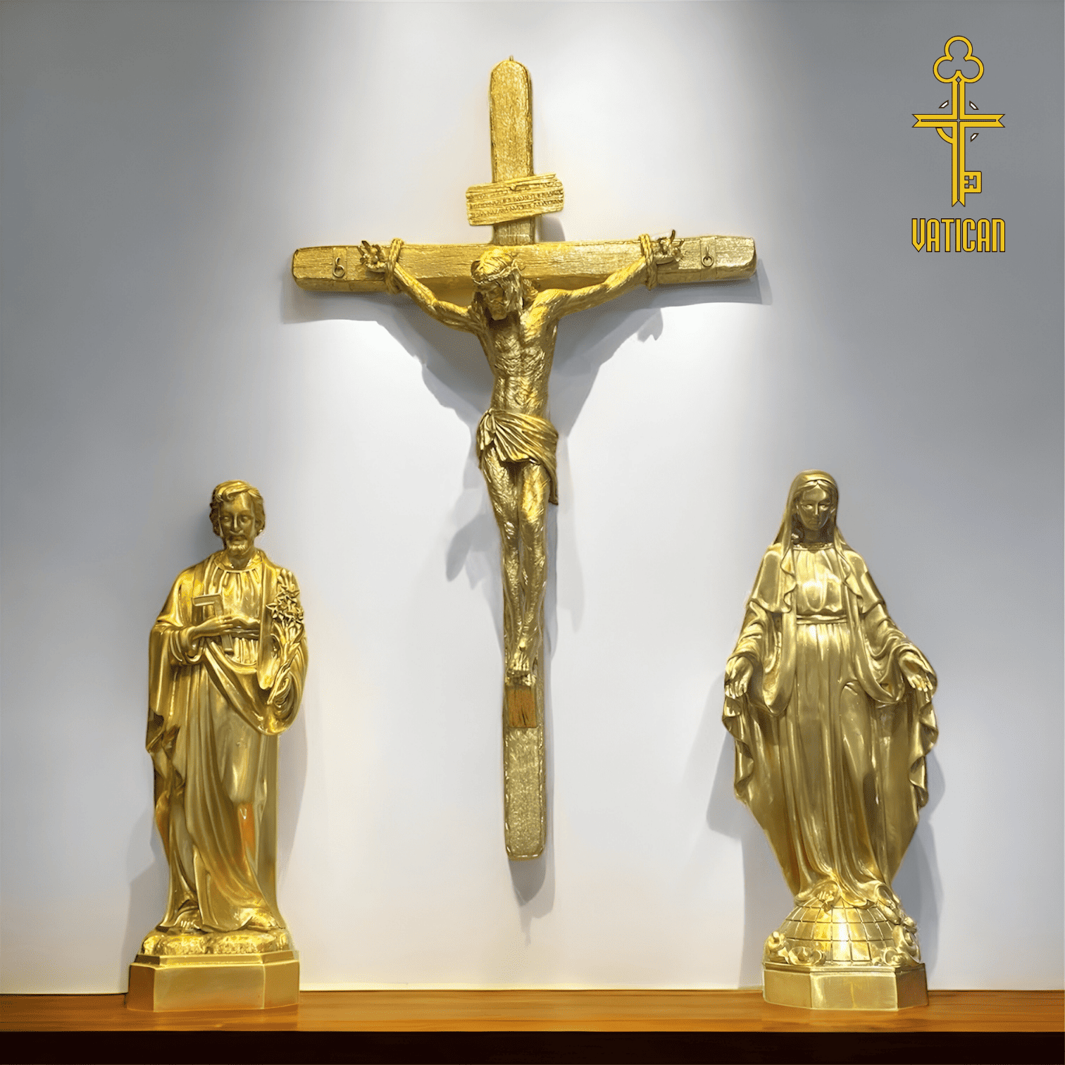 Bộ tượng 3 Đấng 40cm, Thánh giá gỗ 70cm – Sản phẩm đồng cao cấp tại Vatican