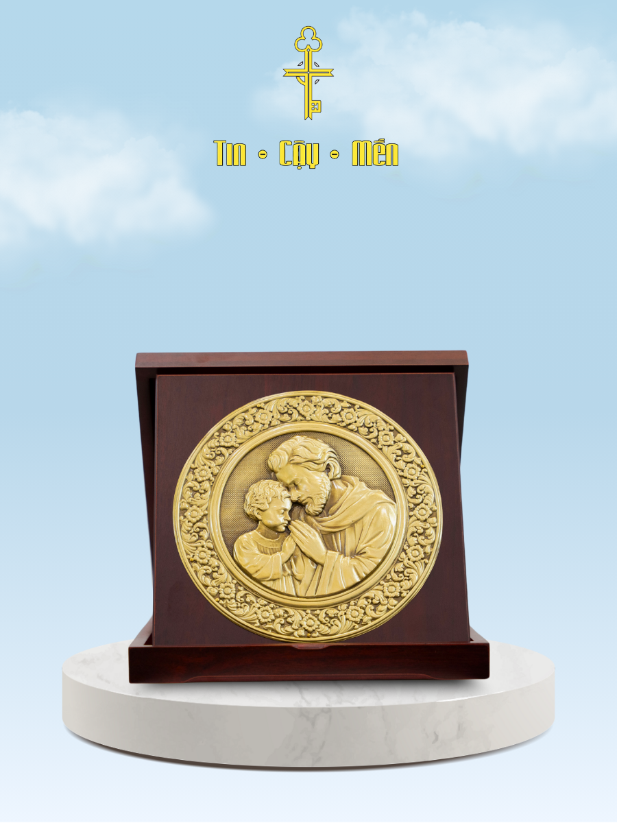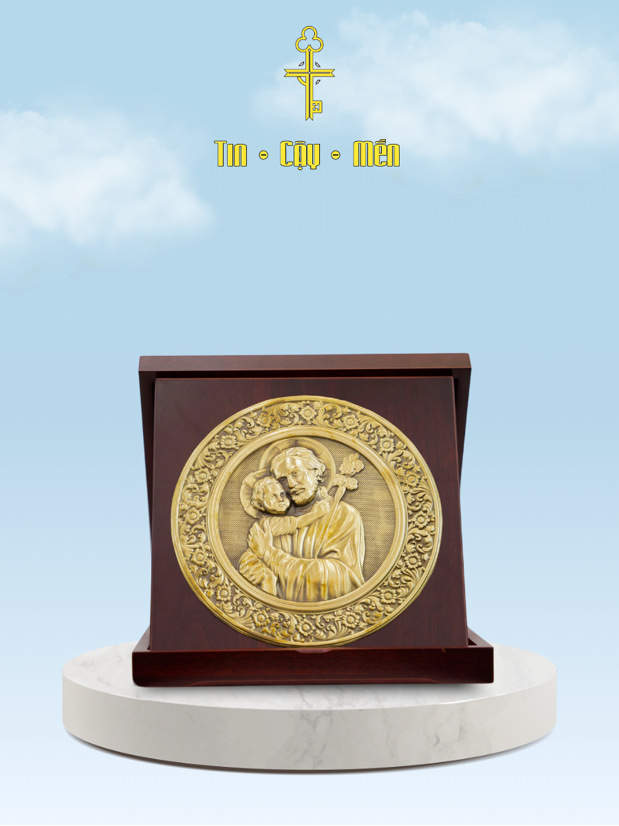 Hộp Vuông Thánh Giuse Bế Chúa Hài Đồng đồng vàng (23×23) – Tinh xảo và thiêng liêng
