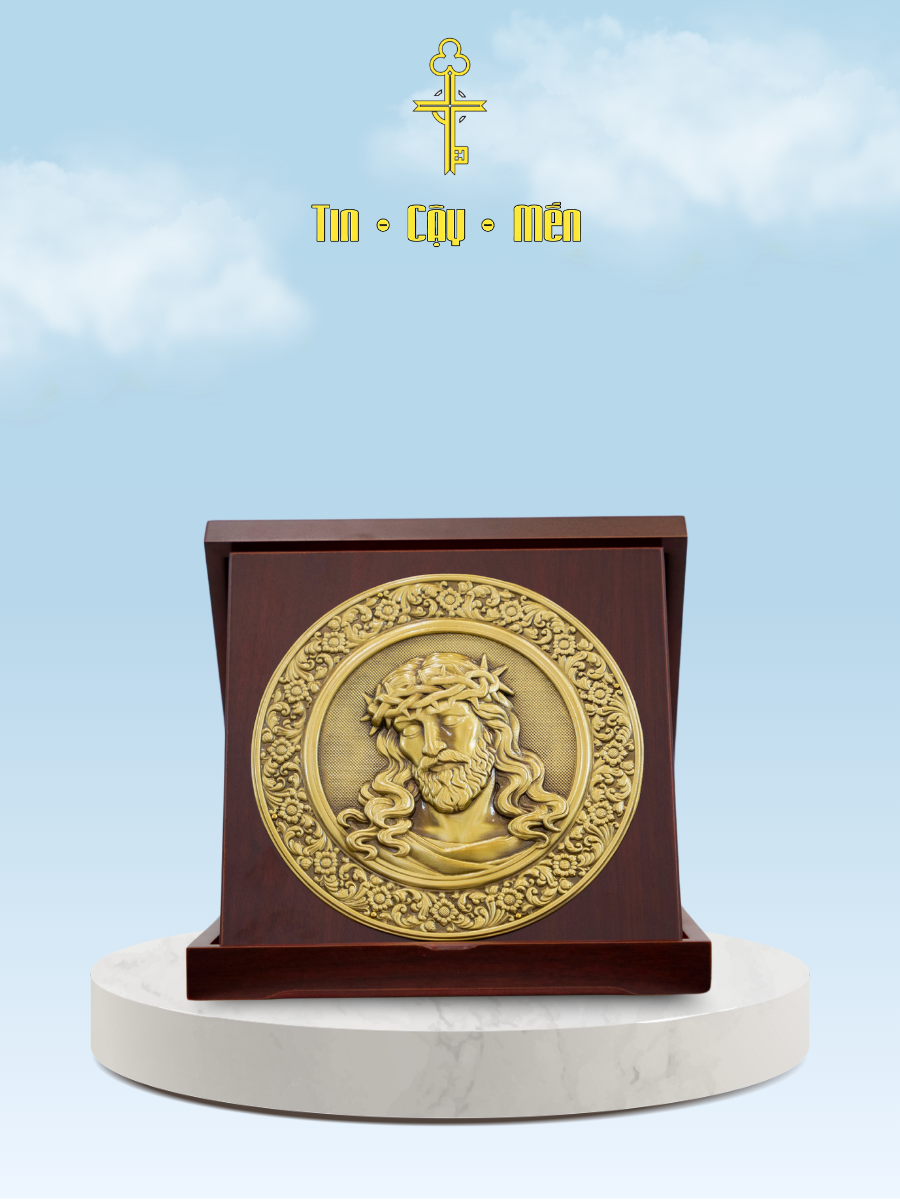 Hộp Vuông Chúa Giê-su Đội Mạo Gai Đồng Vàng (23×23) – Thiết Kế Tinh Xảo