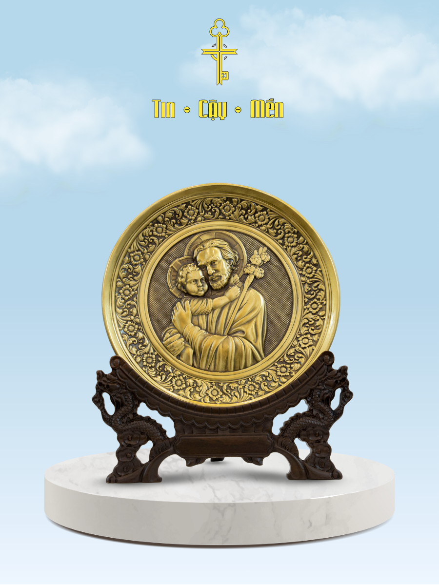 Đĩa Nhỏ Thánh Giuse Bế Chúa Hài Đồng (19,5×24,5 cm) – Tinh Xảo, Thiêng Liêng