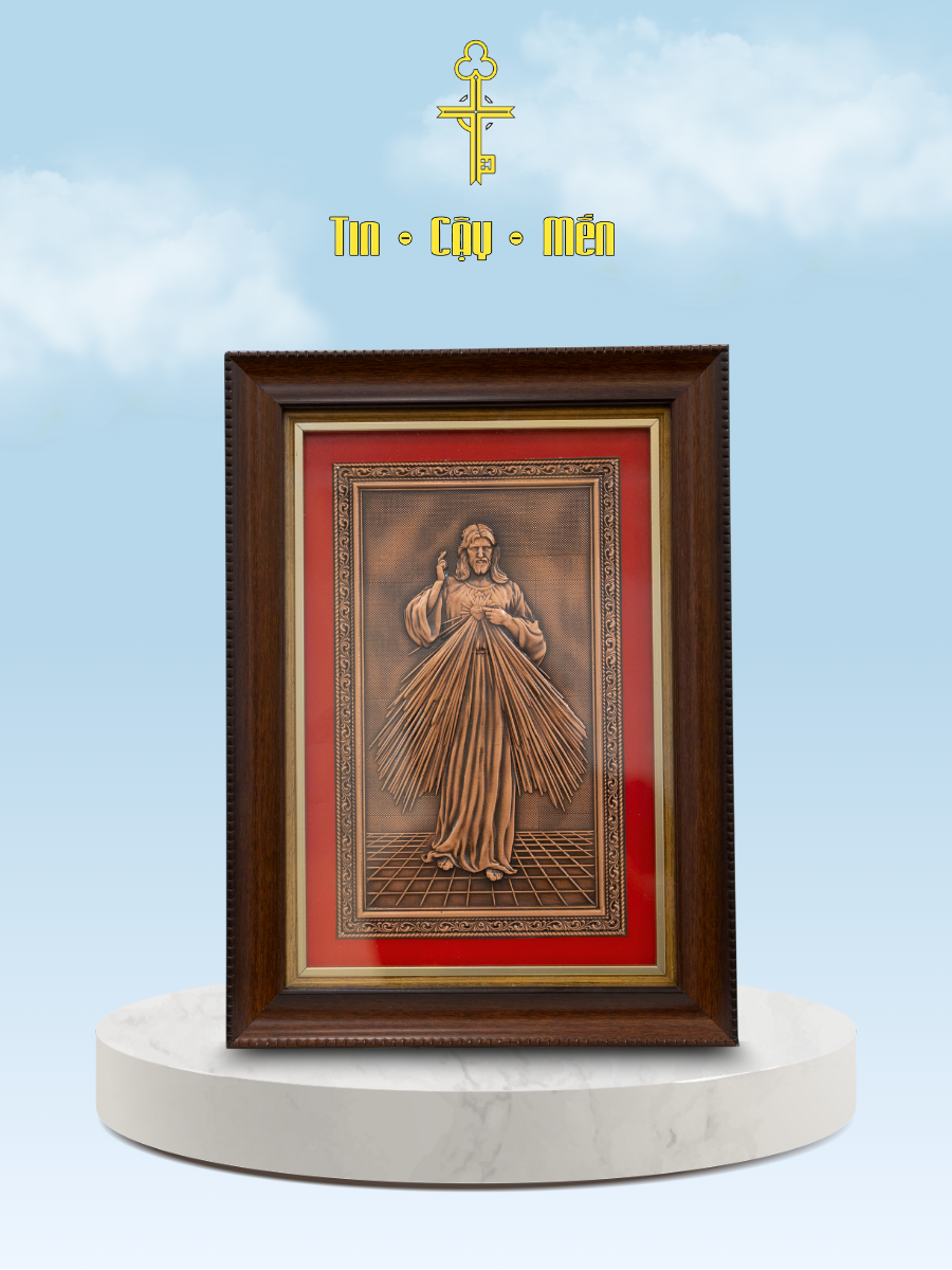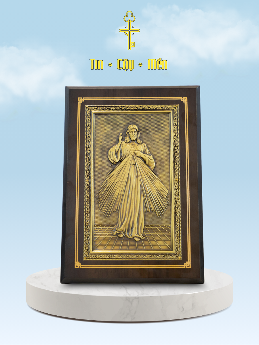 Tranh Đứng Chúa Lòng Thương Xót (26,5×36,5) Mẫu 01 – Tác phẩm đồng tinh xảo, ý nghĩa thiêng liêng