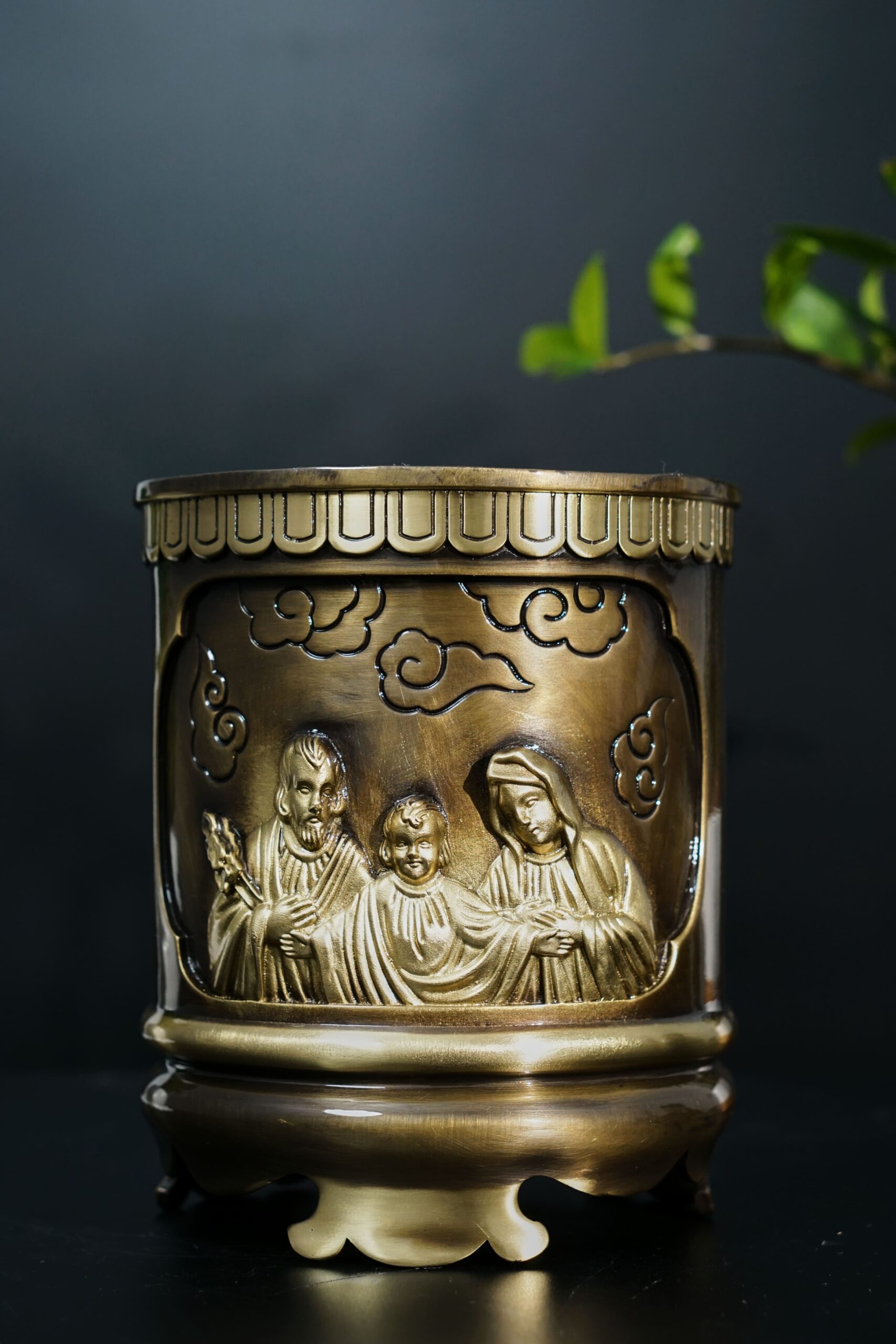 Công nghệ đúc thủ công nguyên khối giúp bát hương đạt độ sắc nét và tinh xảo, thể hiện sự tỉ mỉ và lòng thành kính trong từng chi tiết.