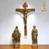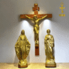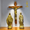 Bộ tượng 3 Đấng 50cm, Thánh giá gỗ 82cm – Tượng đồng Công Giáo cao cấp