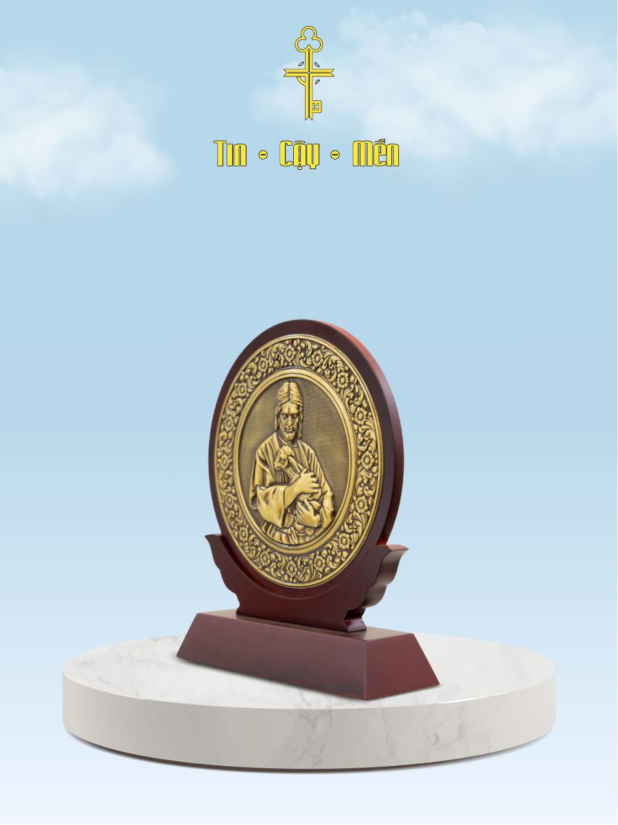 👉 Đặt ngay Đế Gỗ Tròn Chúa Chiên Lành đồng vàng, đồng đỏ 20x25cm để tôn vinh đức tin và đón nhận hồng ân!
