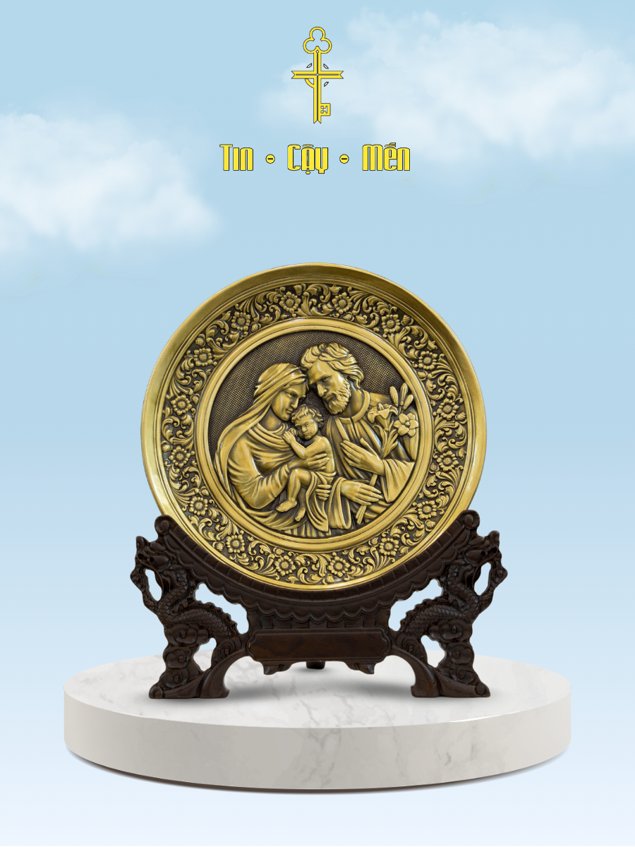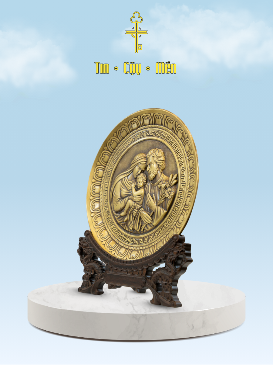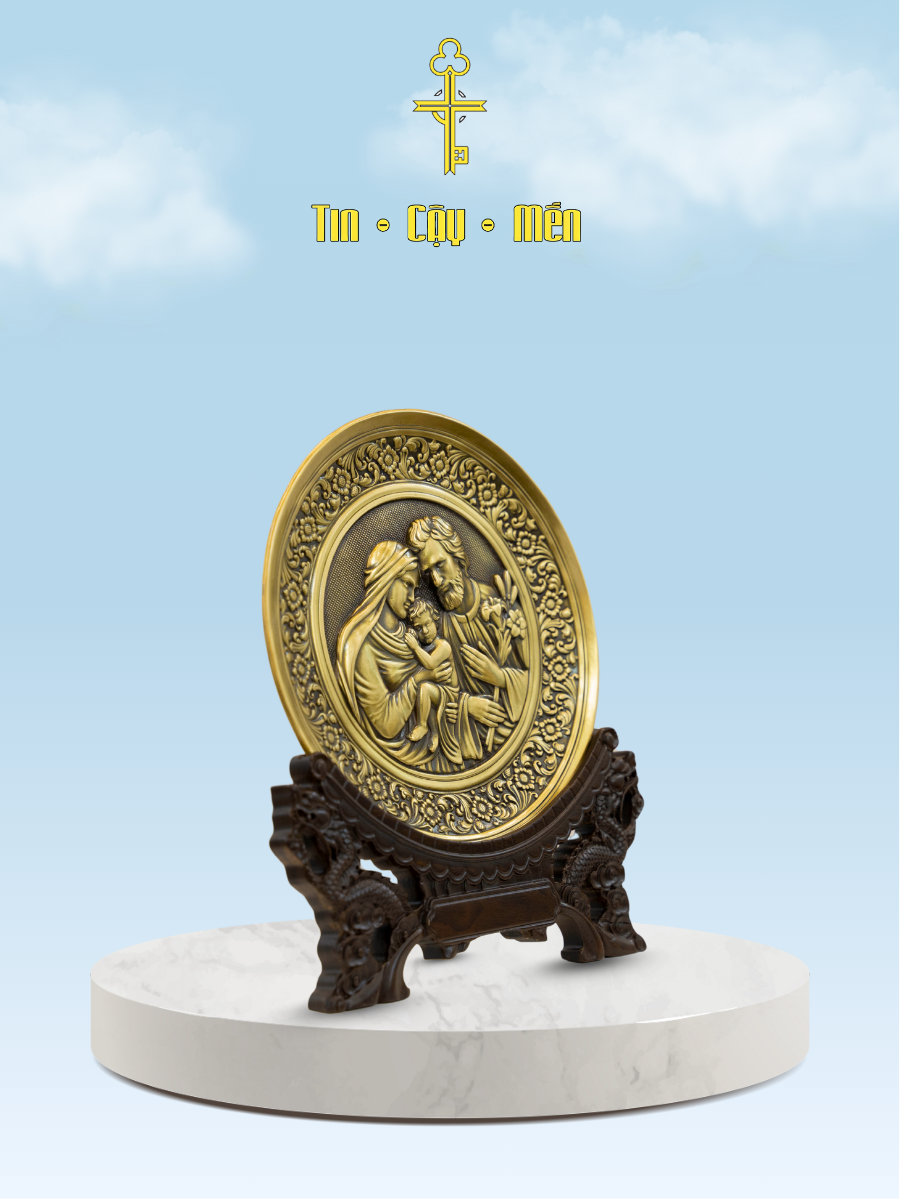 Đĩa nhỏ Gia Đình Thánh Gia đồng vàng mẫu 01 không chỉ là một vật phẩm trang trí mà còn là biểu tượng nhắc nhở mỗi người về giá trị của gia đình, sự yêu thương và lòng trung thành. Khi đặt đĩa trong không gian thờ tự hoặc phòng khách, sản phẩm sẽ mang lại cảm giác bình an, ấm áp và gắn kết cho gia đình.