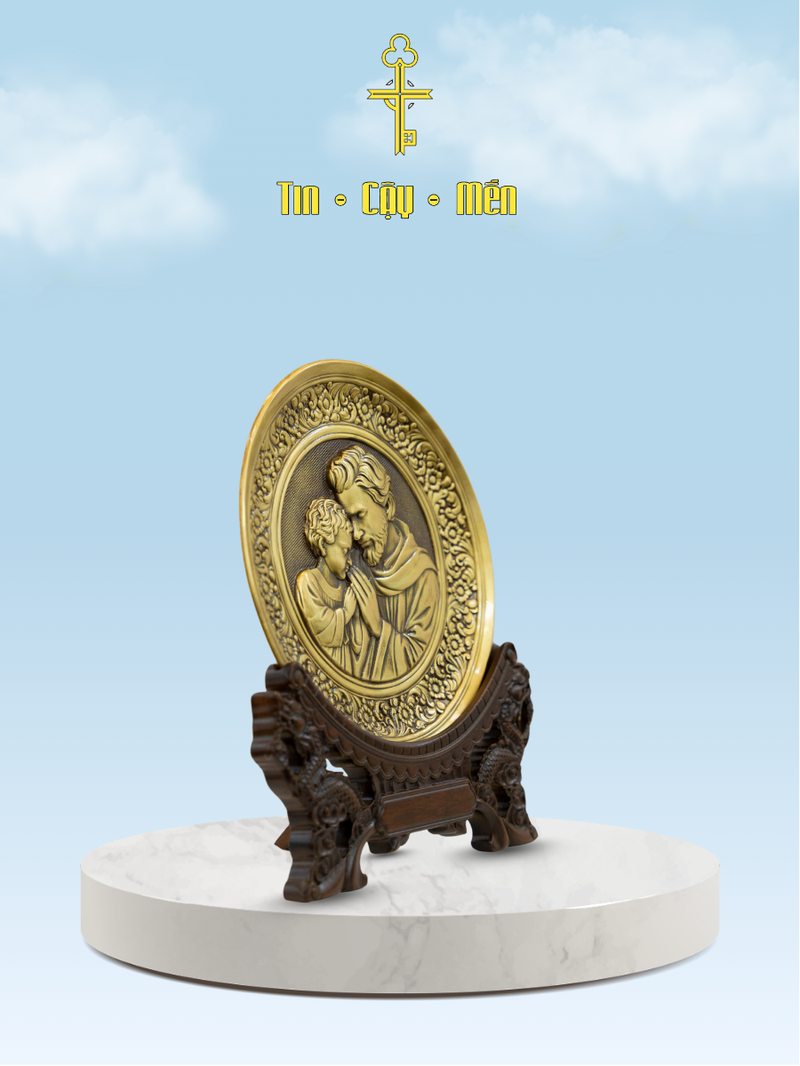• Thiết kế tinh xảo: Hình ảnh Thánh Giuse và Chúa Hài Đồng được chạm khắc tỉ mỉ, sống động.