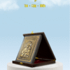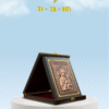 Hộp gỗ dựng đứng, bên trong là tranh đồng chữ nhật đúc nổi