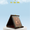 Hộp gỗ dựng đứng, bên trong là tranh đồng chữ nhật đúc nổi
