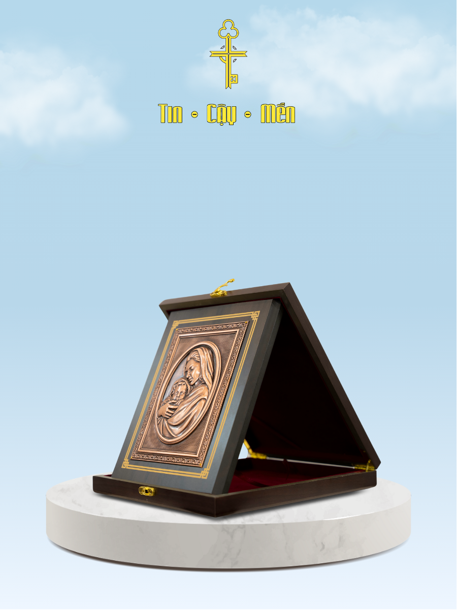 Thông số kỹ thuật của Hộp Gỗ Đức Mẹ Bế Chúa Hài Đồng (13×28 – Hộp 20×25) Mẫu 02 | Đồ Đồng Vatican