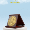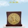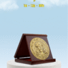 Hộp gỗ vuông dựng nghiêng, tranh đồng tròn đúc nổi, viền hoa văn cổ điển