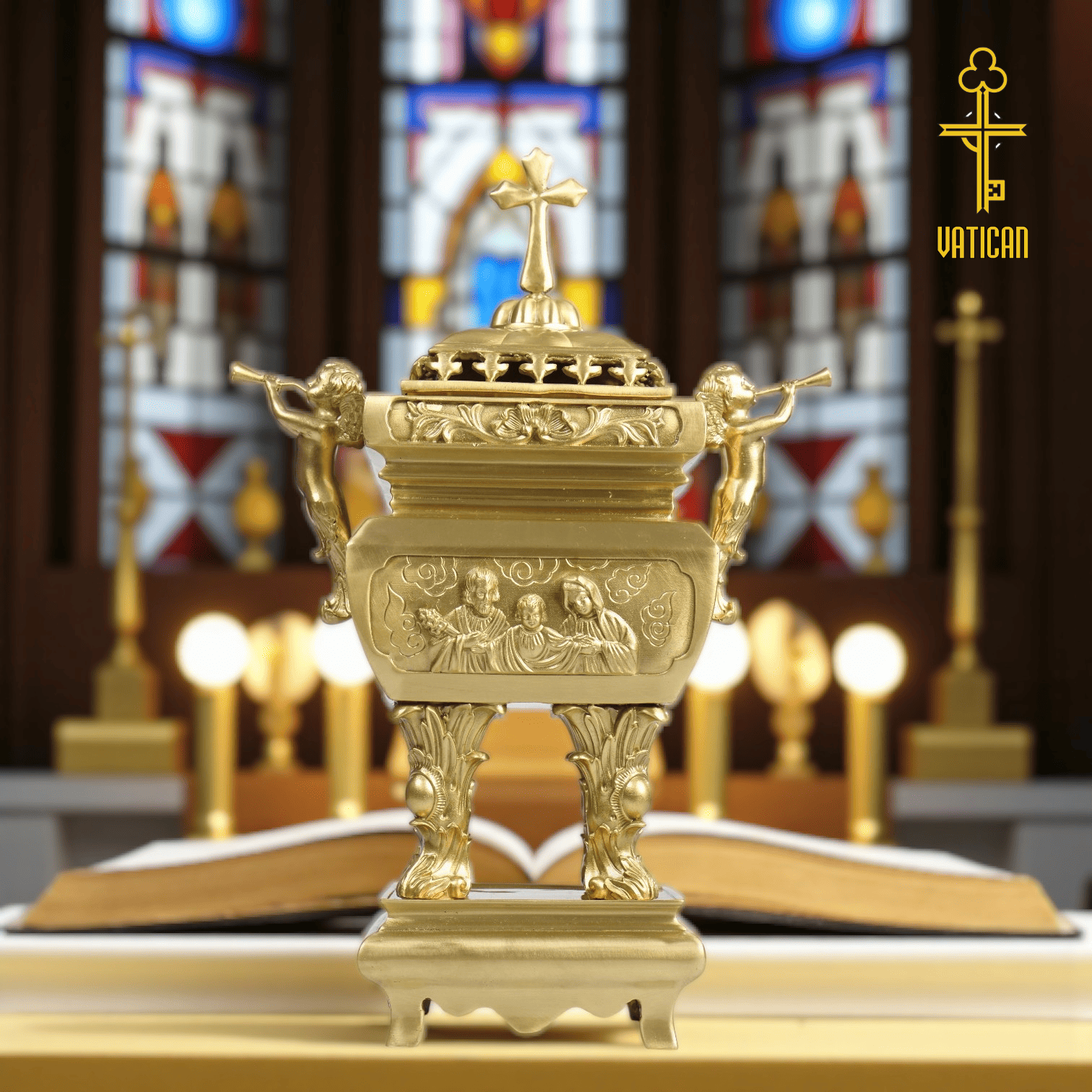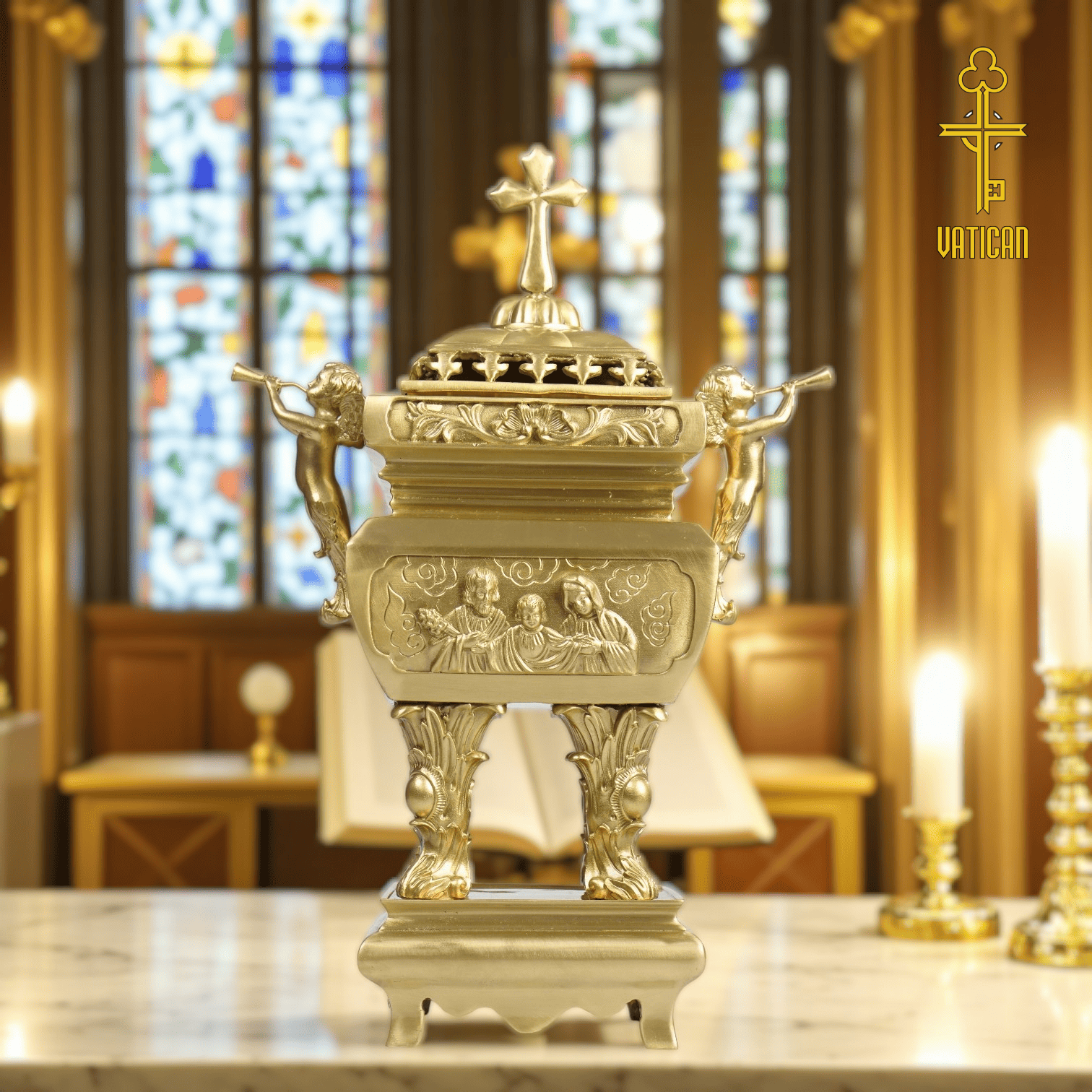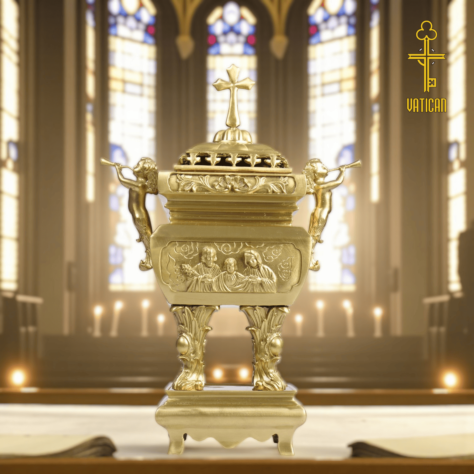 Đặt mua ngay lư công giáo vuông màu mộc nguyên bản để tôn vinh không gian thờ phượng của bạn.