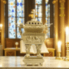 Khói hương từ lư là biểu tượng của lời cầu nguyện bay cao, kết nối con người với Thiên Chúa. Màu mộc nguyên bản giữ sự tinh khiết và vẻ đẹp tự nhiên, thể hiện sự khiêm nhường, giản dị nhưng đầy trang trọng.