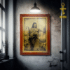 Tranh Chúa Chiên Lành 58×78 khung màu cánh gián không chỉ là một tác phẩm nghệ thuật mà còn là biểu tượng thiêng liêng của tình yêu Chúa.