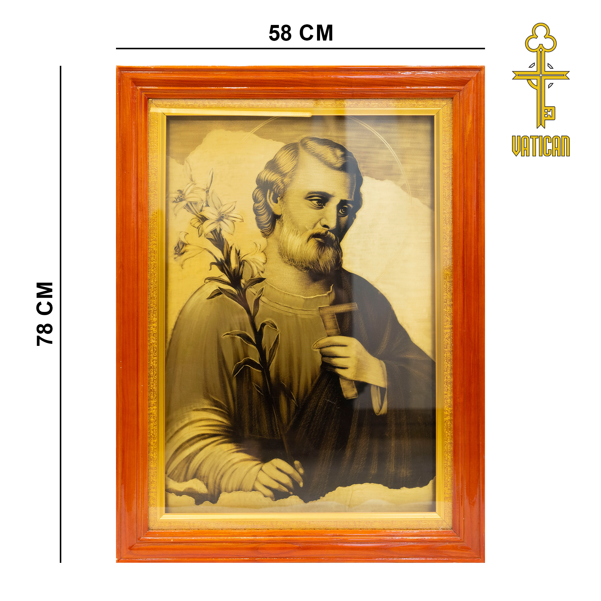 Kích thước 58×78 cm phù hợp treo tại bàn thờ gia đình, phòng khách, nhà nguyện hoặc làm quà tặng công giáo.
