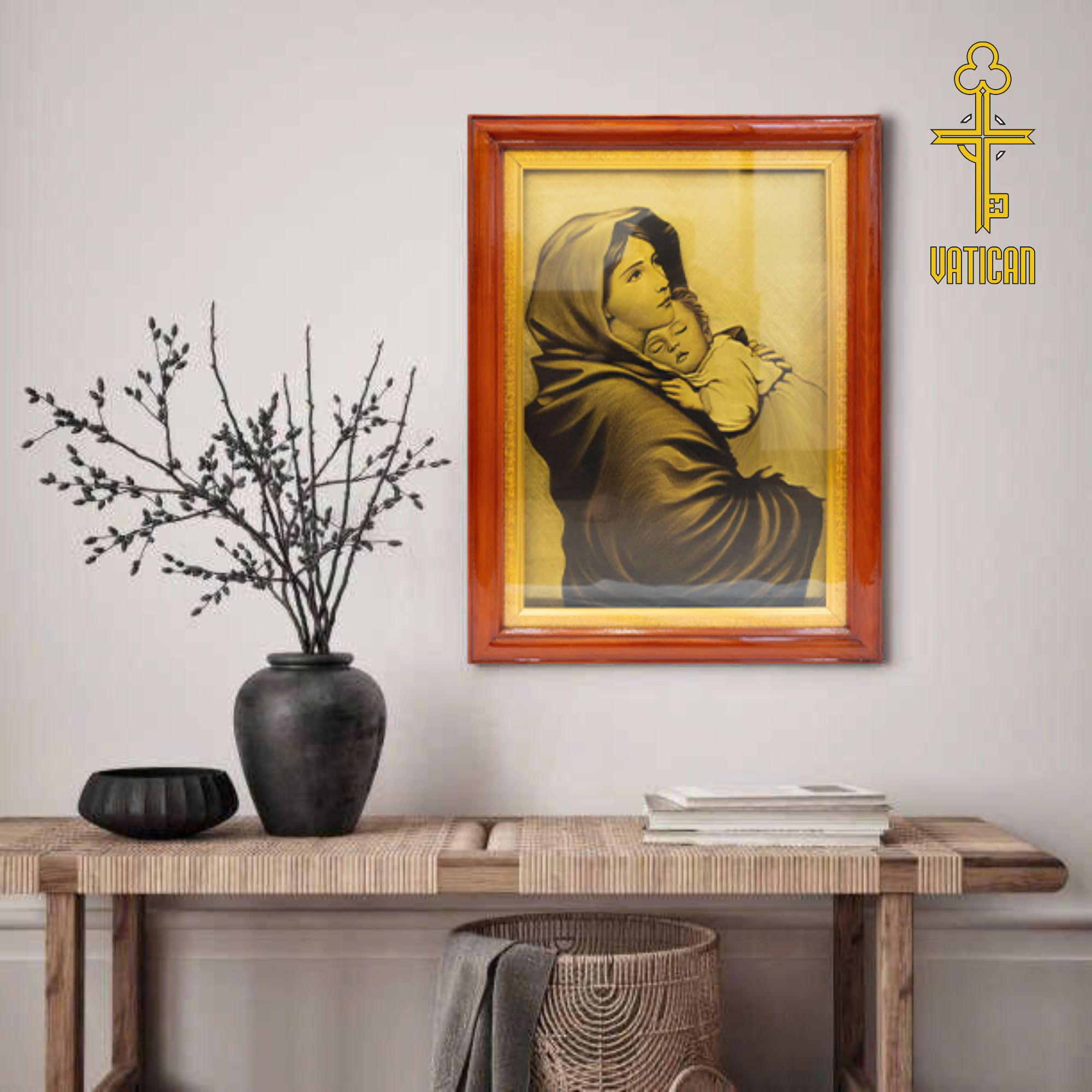 Khi treo Tranh Xước Mẹ Thiên Chúa Bồng Con 58×78 Khung Gỗ Gõ trong gia đình, người xem luôn được gợi nhắc về niềm tin, lòng mến và sự cầu nguyện mỗi ngày.