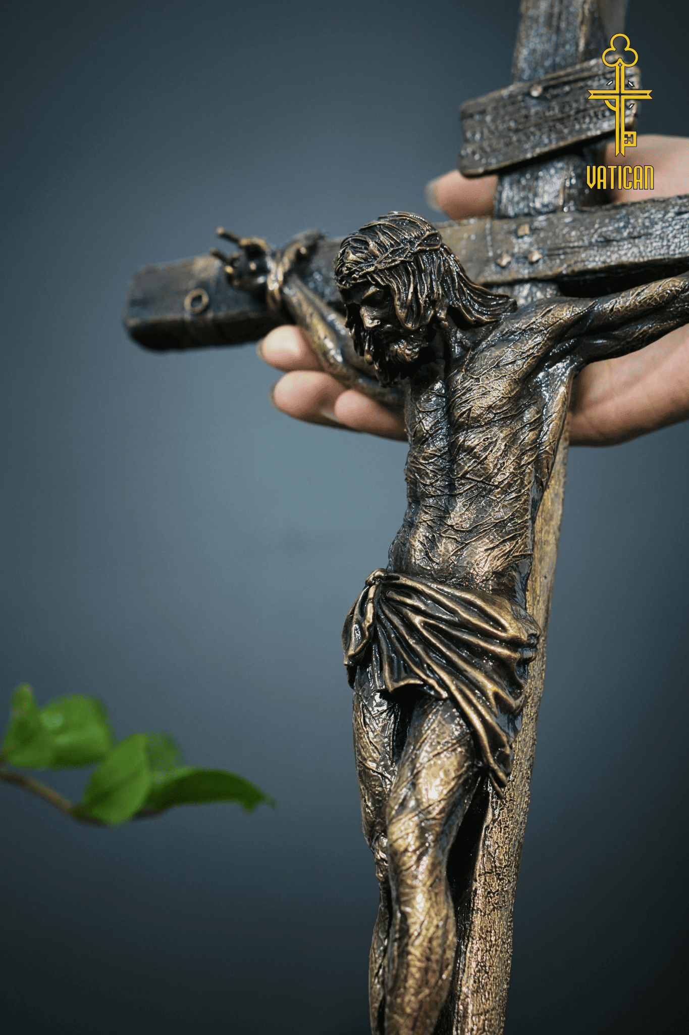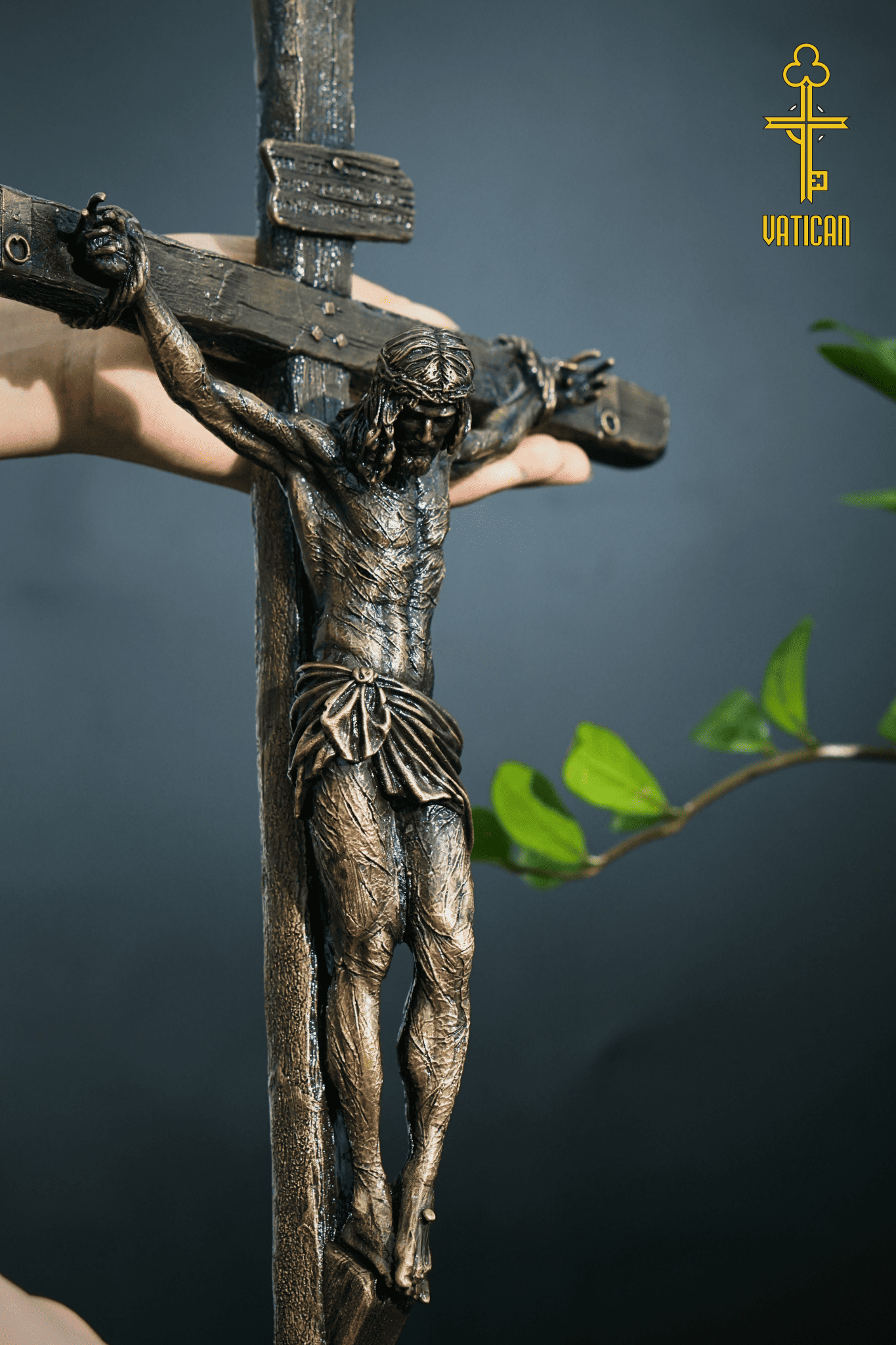 Tượng Chúa chịu nạn màu hun giả cổ là sản phẩm tinh xảo của Đồ Đồng Công Giáo Vatican.