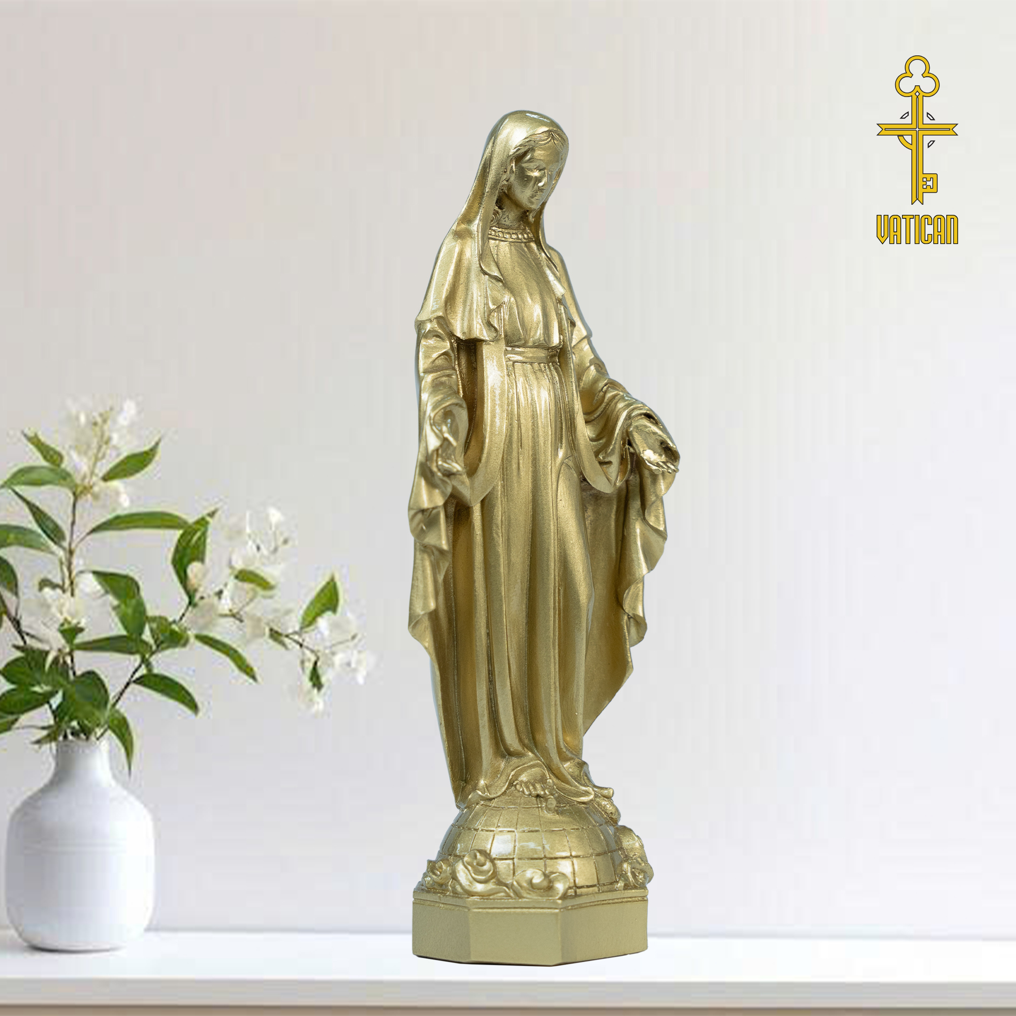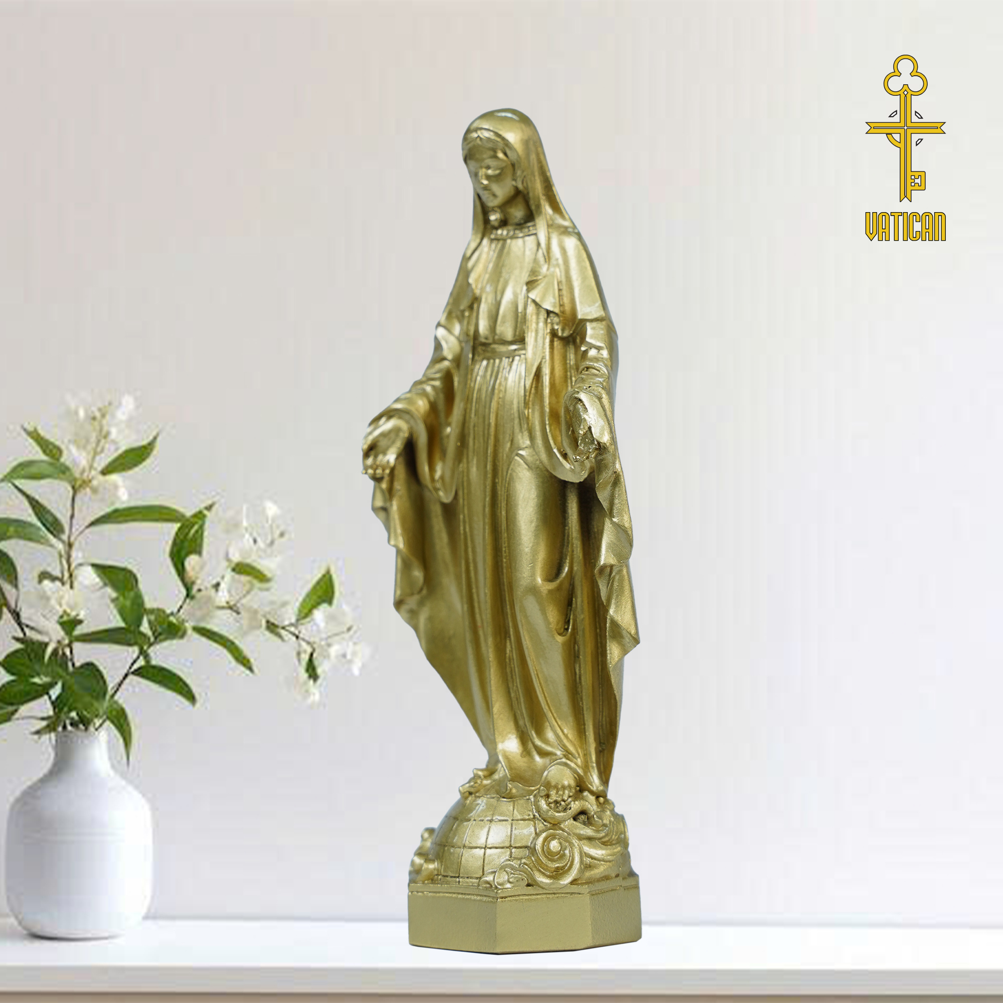 Tượng Đức Mẹ Ban Ơn cao 15cm không chỉ là một tác phẩm nghệ thuật tinh xảo mà còn là biểu tượng thiêng liêng của niềm tin và sự che chở. Sản phẩm phù hợp để trưng bày trong gia đình, phòng khách hoặc làm quà tặng đạo đức trong các dịp lễ, mừng thọ, tân gia. Với chất liệu đồng vàng cao cấp và công nghệ đúc thủ công, sản phẩm đảm bảo độ bền đẹp lâu dài cùng giá trị tâm linh sâu sắc.