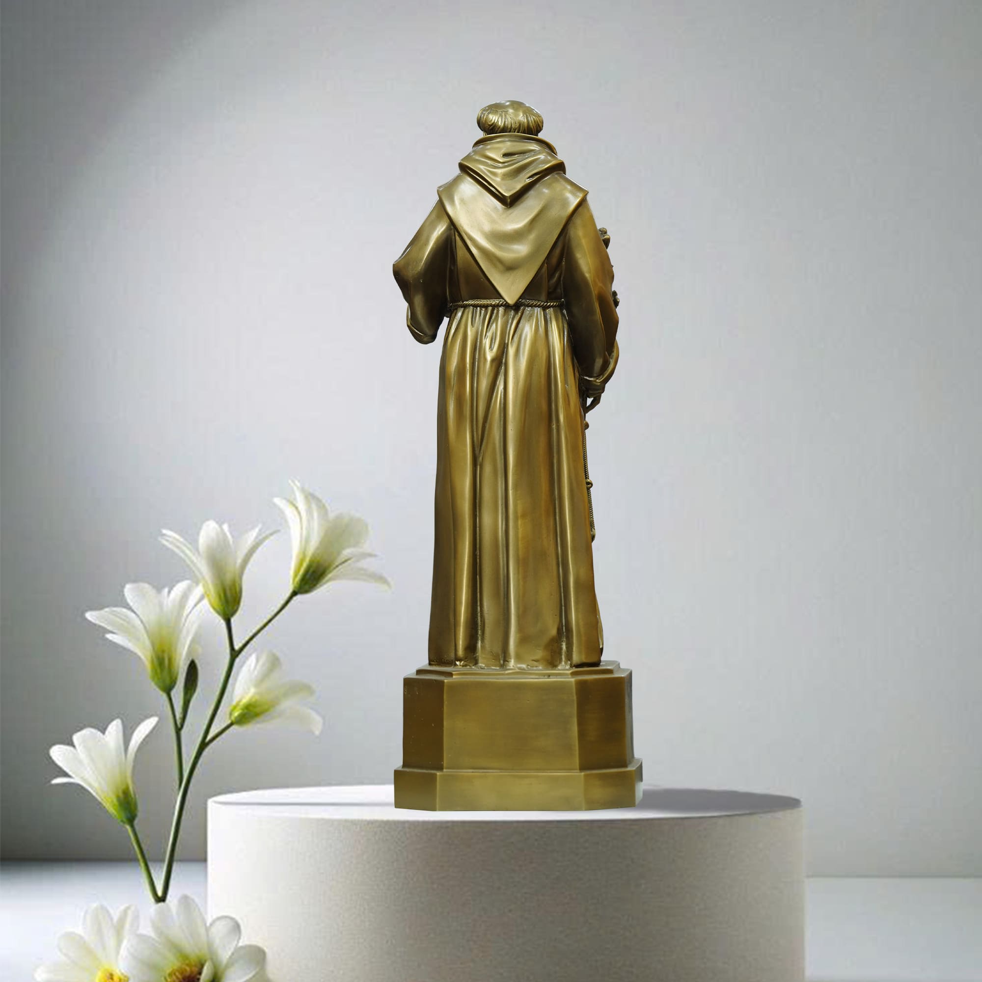 Tượng thánh Anton màu vàng nguyên bản là một trong những tác phẩm tôn giáo đặc sắc của thương hiệu Đồ Đồng Công Giáo Vatican. Sản phẩm được chế tác từ đồng vàng cao cấp, trải qua quá trình đúc thủ công nguyên khối do các nghệ nhân lành nghề thực hiện.