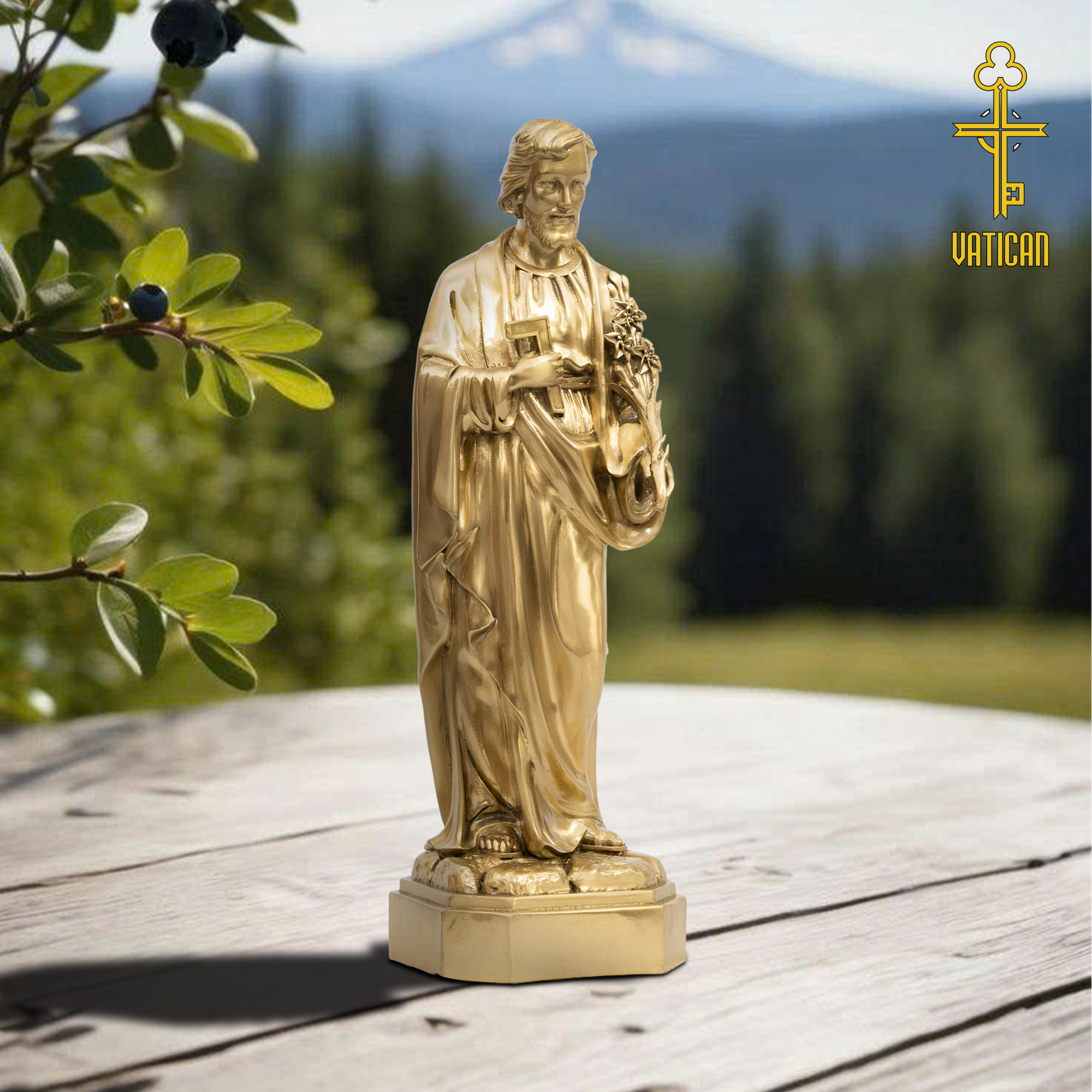 Tượng Thánh Giuse cao 15cm là một trong những sản phẩm tâm linh được chế tác tinh xảo bởi Đồ Đồng Công Giáo Vatican. Sản phẩm được làm từ đồng vàng cao cấp, trải qua quy trình đúc thủ công nguyên khối nhằm giữ nguyên sự bền chắc và tính thẩm mỹ lâu dài.