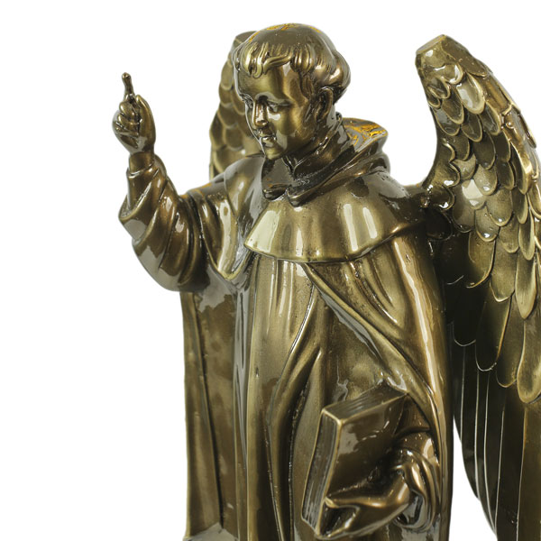 ● Hình ảnh đáng kính: Tượng Thánh Vinh Sơn Ferrer thể hiện sự cân xứng và hài hòa, với các chi tiết như tóc, ánh mắt, áo Dòng, và đôi cánh được chạm khắc tinh tế. Những đường nét này không chỉ phản ánh vẻ đẹp bên ngoài mà còn truyền tải tinh thần và sự thánh thiện của Ngài.